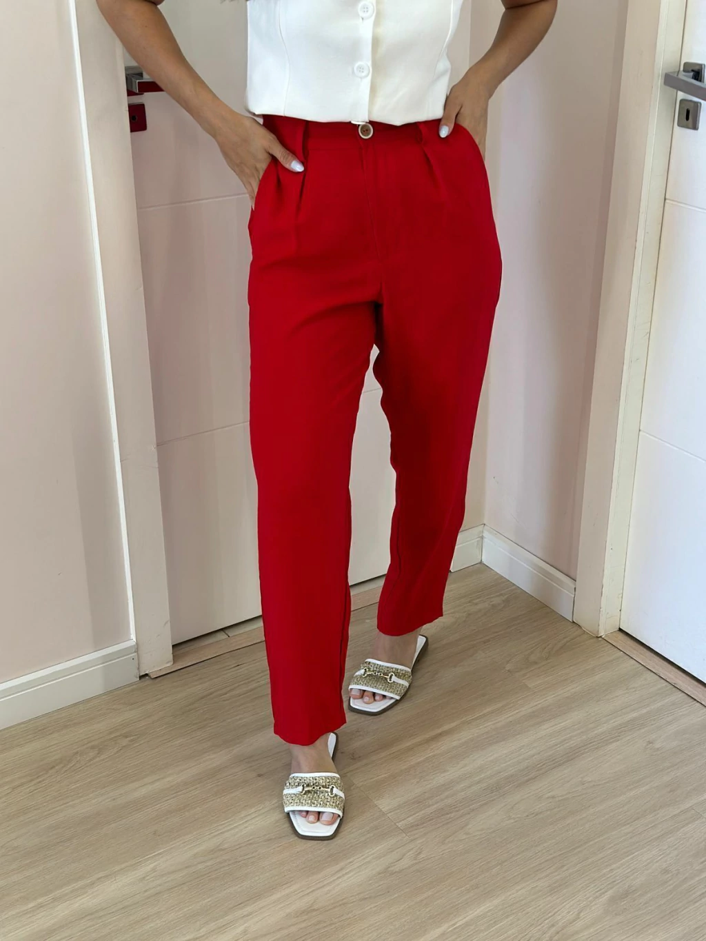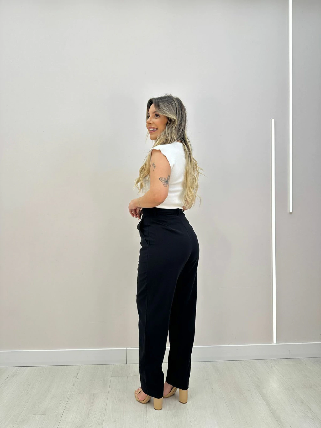 Elegante e atemporal, essa calça alfaiatada traz sofisticação ao visual sem abrir mão do conforto. O caimento estruturado valoriza a silhueta, e o tecido de toque macio garante bem-estar o dia todo. Uma peça versátil para composições casuais ou formais.