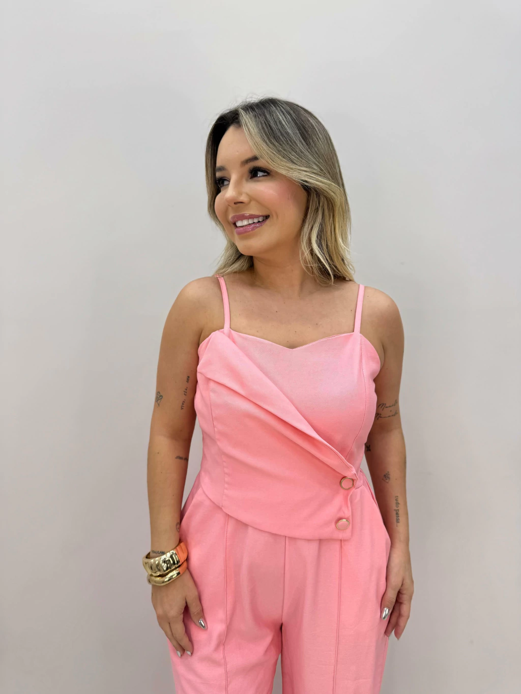 Macacão Alfaiataria com Alças Finas e Decote Transpassado